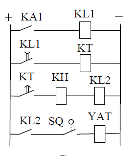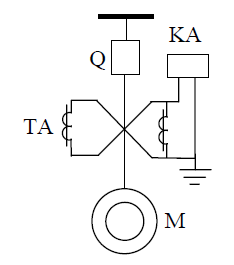 Рис.7. Токовая защита без выдержки времени (однорелейная схема), где КА – реле тока; KL – промежуточное реле, КН – указательное реле, SQ – выключатель положения, YAT – электромагнит отключения высоковольтного выключателя Ток срабатывания токовой отсечки: