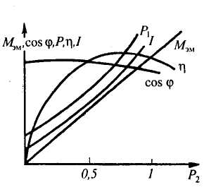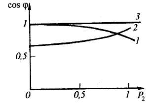 Рис. 8. Зависимости cos φ синхронного двигателя от нагрузки