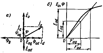 Фаqи ЭДС Ead и Еаqявнополюсной машины и их определение по характеристике холостого хода