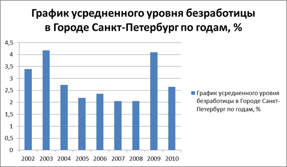 Актуальность обращения к проблемам исследования категории «человеческий потенциал» и его подсистем – «трудового потенциала», «человеческого капитала» – основывается на значительном усилении роли человеческого фактора во всех областях развития экономики и общества. Трудовой потенциал – одна из ключевых подсистем человеческого потенциала, его ядро. От формирования, распределения и использования трудового потенциала регионов зависят не только эффективное воспроизводство человеческого потенциала страны, но и возможности ускорения темпов «догоняющего» развития, перехода из разряда «развивающихся экономик» в «развитые». Статья первая закона о занятости населения в РФ гласит: Занятость – это деятельность граждан, связанная с удовлетворением личных и общественных потребностей, не противоречащая законодательству РФ и приносящая, как правило, им заработок, трудовой доход. По данным за 2010 год, город Санкт-Петербург находится на 2 месте по уровню безработицы, который составил 2.65%, тогда как средний уровень по стране составил 5.46%.