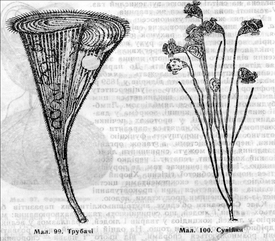 Крім вільноплаваючих, в наших водоймах живуть прикріплені інфузорії — трубачі, сувійки (мал. 99, 100). Всі інфузорії, живлячись бактеріями, активно очищають водойми. Вони використовуються і під час біологічного очищання стічних вод, утворюючи так званий активний мул у спеціальних установках — аеротенках. У шлунку жуйних ссавців живе багато інфузорій, які сприяють перетравленню грубої рослинної їжі. Серед інфузорій балантидій кишковий — паразит кишок людини ї свиней. Людина заражається балантидієм під час догляду за тваринами, заносячи цисти в рот немитими руками. Балантидії утворюють виразки в товстій кишці, викликаючи коліт. Date: 2015-07-24; view: 1270; Нарушение авторских прав |