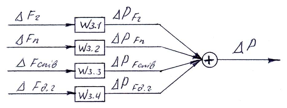 Рис. 1.5. Структурна схема по каналу регулювання тиску На співвідношення «паливо-повітря» впливають параметри: витрата повітря та газу, температура в печі. Враховуючи функцію передачі по кожному каналу, отримуємо рисунок 1.6.