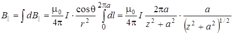 2. Определить величину магнитной индукции на оси витка с током в форме окружности радиуса