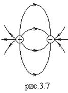 Здесь - единичный вектор вдоль . На рис.3.7 и 3.8. показаны силовые линии электрического диполя и витка с током. Видно, что поле витка с током во многом выглядит похожим на поле электрического диполя.