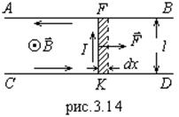 Рассмотрим действие сил Ампера на перемещающийся в поле контур (рис.3.14). Пусть два параллельных провода