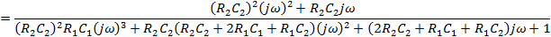 Wa0=(R2*C2)^2; Wa1=R2*C2; Wb0=C1*R1*(R2*C2)^2; Wb1=C2*R2*(C2*R2+2*C1*R1+C2*R1); Wb2=2*C2*R2+C1*R1+C2*R1;