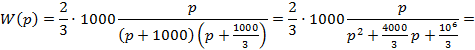 Нули: p=0; p=-500 Полюса: p=-1000; p=-500; p=-1000/3