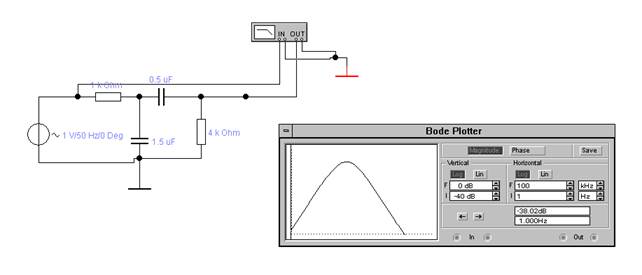 Для проверки предыдущих вычислений можно сравнить полученную выше ЛАЧХ с ЛАЧХ, полученной при непосредственном моделировании электрической цепи в пакете Electronics Workbench: