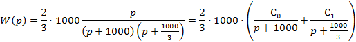 Получим импульсную переходную функцию этого фильтра. Для этого разложим передаточную функцию на простые дроби: