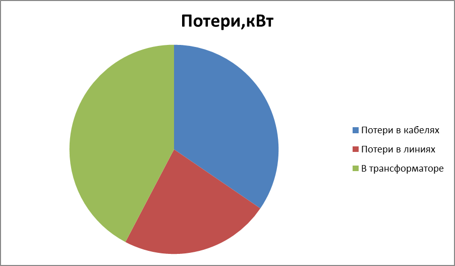 Диаграмма 12.2 Соотношение потерь мощности в кабелях, линиях и трансформаторе.