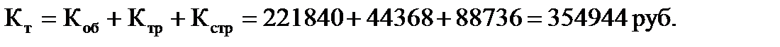Капитальные вложения на неучтенное оборудование: Кн.о.= 0,2· Кт =0,2·354944 = 70988,8 руб. Капитальные вложения на ТП составят: