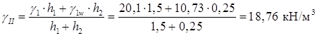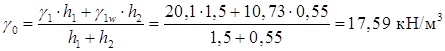 где Gгр – вес грунта на обрезах фундамента Осредненное значение удельного веса грунтов выше подошвы фундамента: