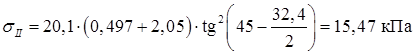 Боковое давление на уровне подошвы фундамента определим по формуле: