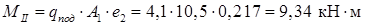 Момент от внецентренного приложения нагрузки от перекрытия подвала найдем по формуле: