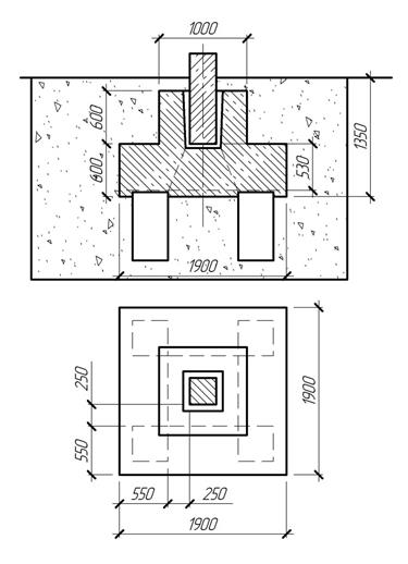 Ширина Глубина заделки колонны – 60 см. Расчет на продавливание колонной квадратного сечения центрально нагруженного ростверка проведем следующим образом: