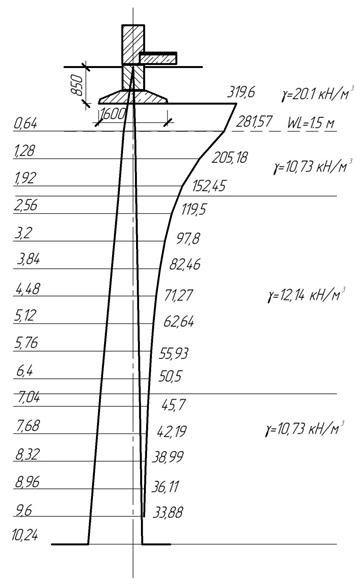 Исходные данные: Определяем ординаты эпюры вертикального напряжения от действия собственного веса грунта и вспомогательной эпюры