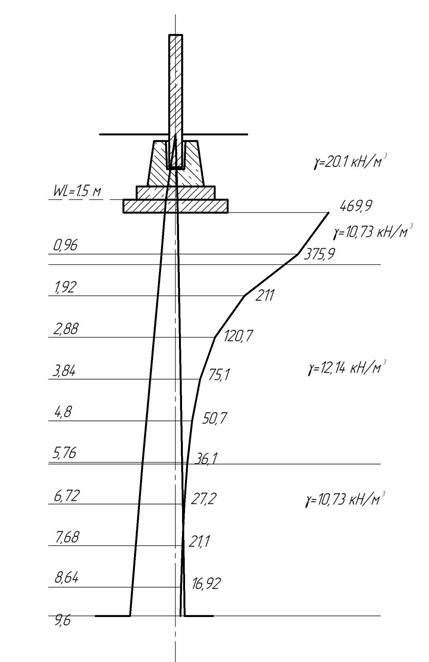 Исходные данные: Ординаты эпюры вертикального напряжения от действия собственного веса грунта и вспомогательной эпюры