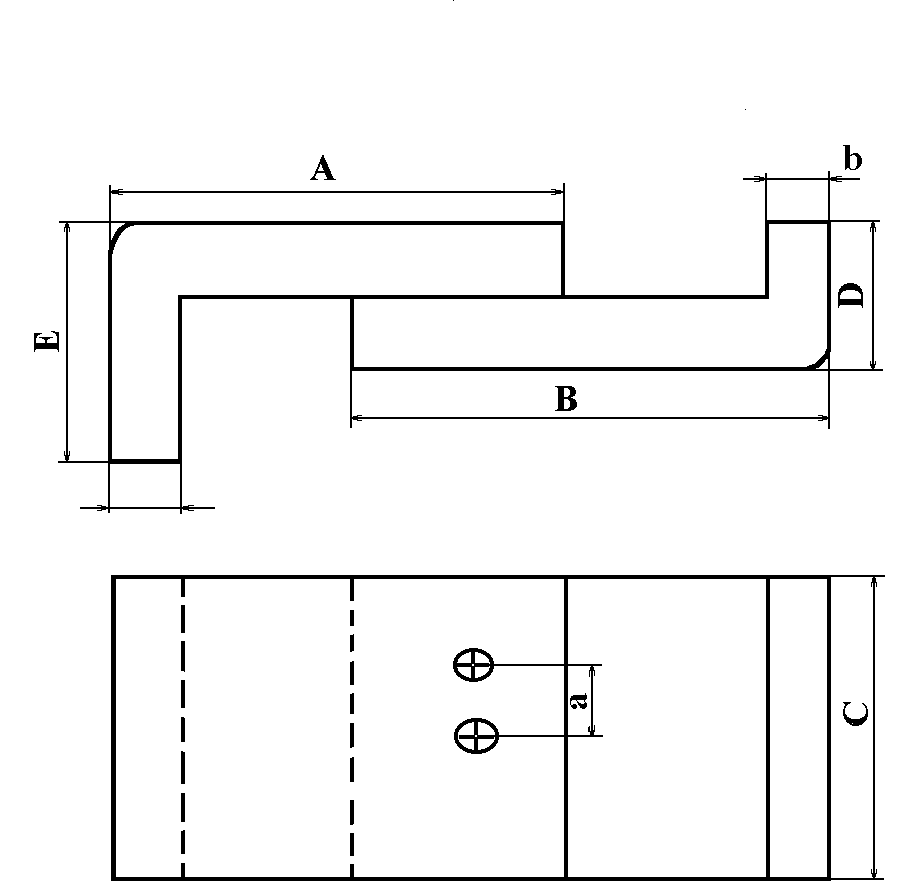 Согласно заданию необходимо разработать технологический процесс контактной сварки каркаса (рис.1.1), который представляет собой конструкцию из двух сваренных внахлест неравнобоких уголков с размерами А=750 мм, В=500 мм, С=550мм, D=200 мм, E=180 мм, b=0.8 мм, a=30 мм.