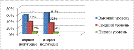 Команда специалистов делает вывод о том, какому уровню соответствует достижение ребёнком планируемых результатов (динамики) формирования интегративного качества: высокому, среднему, низкому. Степень соответствия выражается в определённом количестве баллов. Затем переводились эти данные в процентный состав и выстраивались диаграммы и графики, специалисты заполняли сводные таблицы.