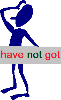 I have not got – У меня нет (я не обладаю) You have not got – У тебя нет (ты не имеешь) У вас нет (вы не имеете) He has not got – У него нет (он не обладает) She has not got – У неё нет (она не имеет) It has not got – У него нет (оно не обладает) We have not got – У нас нет (мы не имеем) They have not got – У них нет (они не обладают) Для отрицания тоже есть упрощённые формы: have not got = haven`t got has not got = hasn`t got