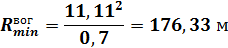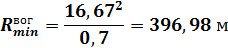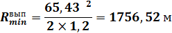 Минимальных радиус выпуклой кривой определяется по формуле: