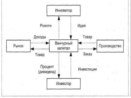 Однако в России, когда жесткие условия конкуренции и вероятность разорения предприятий заставляет внедрять новые технологии, продукты, способы организации и управления производством, необходимо применять эффективные формы освоения инноваций. Одним из таких вариантов выступает венчурный капитал. Венчурный бизнес - рискованный научно-технический или технологический бизнес. А также венчурный бизнес является производным от науки, (фундаментальной и прикладной), и появился на свет как требование экономического развития в качестве недостающего звена между наукой и производством.