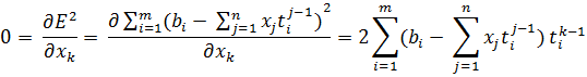 Допустим, что условия проведения эксперимента таковы, что измерения проводятся с заведомой погрешностью. В этих случаях закон изменения температуры Q(t) ищут с помощью некоторого полинома P(t) = определяя неизвестные коэффициенты E( принимала минимальное значение. Поскольку минимизируется сумма квадратов, то этот метод называется аппроксимацией данных методом наименьших квадратов. Если заменить P(t) его выражением, то получим
