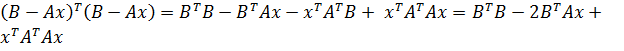 В матричной форме это равенство перепишется в виде ATx=ATB (1.3) Здесь A – прямоугольная m× n матрица. Причем в задачах аппроксимации данных, как правило, m > n. Уравнение (1.3) называется нормальным уравнением. Можно было с самого начала, используя евклидову норму векторов, записать задачу в эквивалентной матричной форме: