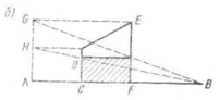 При двусторонней схеме питания однопутного участка все построения остаются такими же, но при этом необходимо учитывать токораспределение между подстанциями. Обычно токораспределение нагрузки каждого поезда между подстанциями зоны выполняют графически. Такое графическое токораспределение производят на основании известной из геометрии теоремы о пропорциональном делении отрезка. Пусть (рис. 6.4, а) отрезок DL означает в определенном масштабе нагрузку поезда на зоне между подстанциями А и В, а