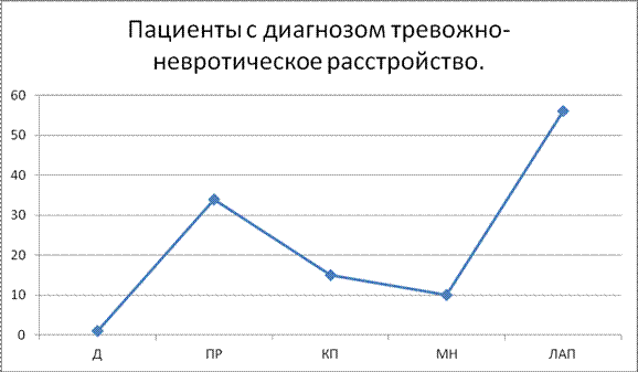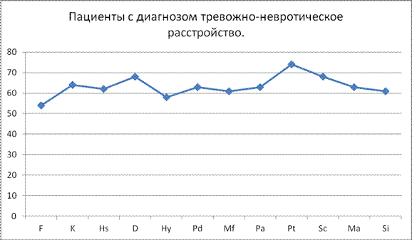 Результаты анализа исследования по методике МЛО «Адаптивность». При оценке среднестатистических данных по методике МЛО «Адаптивность» был построен личностный профиль пациентов с диагнозом тревожно-невротическое расстройство.