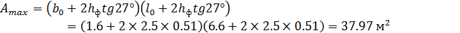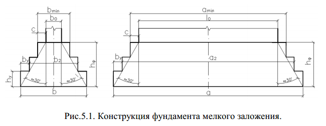 Максимальную площадь подошвы фундамента при заданной его высоте hф определяют исходя из нормированного [8] условия обеспечения жесткости фундамента. Она заключается в том, что линия уступов или наклон граней фундамента, как правило, не должны отклоняться от вертикали на угол ∝ более 30° (см. рис. 5.1). отсюда: