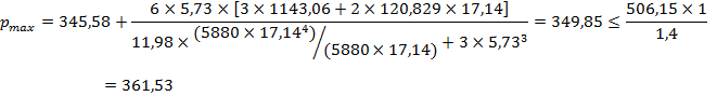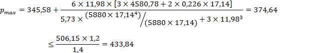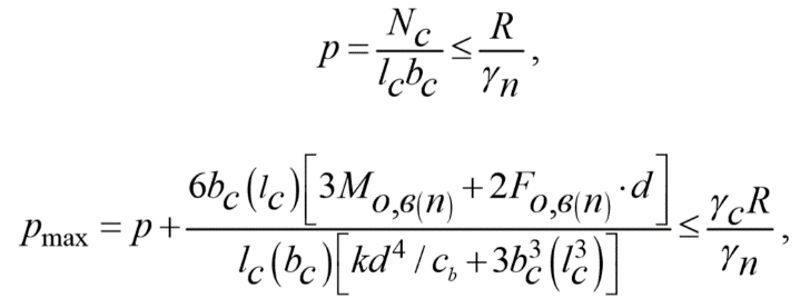 Расчет выполняется вдоль и поперек моста в сочетаниях №№ 1, 2, 4 и 5. Проверка напряжений по подошве условного фундамента производится по формулам:
