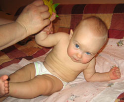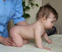 В этом возрасте ваш ребенок будет учиться вставать на четвереньки. Даже если в дальнейшем он не захочет ползать, уметь стоять на четвереньках необходимо, так как из этого положения легче самостоятельно сесть или встать на колени, с колен — на прямые ноги, держась за опору. В положении на четвереньках сложнее всего удержать свой вес на прямых руках.За счет того, что при рождении физиологический мышечный тонусбольше выражен в сгибателях рук, на его основе быстрее формируется мышечная сила и ребенку легче подтянуться, чем отжаться. Иногда возникают сложности при подтягивании коленок под живот. Это бывает, если родители слишком часто ставят ребенка на ноги. При этом разгибатели ног перегружаются, повышается их тонус, ребенок не может их расслабить. Разгибание ног фиксируется как двигательная привычка, и в тот момент, когда их надо согнуть и подтянуть под живот, чтобы встать на четвереньки, они выпрямляются. Ребенок, научившись вставать на четвереньки, в этом положении сначала раскачивается вперед— назад, затем начинает выпрыгивать, с одновременной работой обеих ног. И только после этого учится попеременному движению конечностей, необходимых чтобыползать. Еще ребенок будет учиться самостоятельно садиться. Существует три положения тела, из которых малыш пытается сесть. Самый легкий и «ранний» способ -сесть с четверенек, самый сложный — из положения лежа на спине, с участием мышц животика, В это время формируется опора на ноги, которая начинается с кратковременного удержания своего веса на ногах. Распространенная ошибка родителей в данном периоде – имитация прыжков при поддержке ребенка в подмышечной области. У него быстро вырабатываетсяневерный условный рефлекс при соприкосновении подошв с поверхностью: вместо выпрямления ног — прыжок. Малыш не ощущает веса своего тела, нет попеременной работы ног, необходимой для перешагивания, быстро нарастает тонус икроножных мышц, тем самым тормозится формирование опоры и предходьбы. Date: 2015-07-24; view: 955; Нарушение авторских прав |