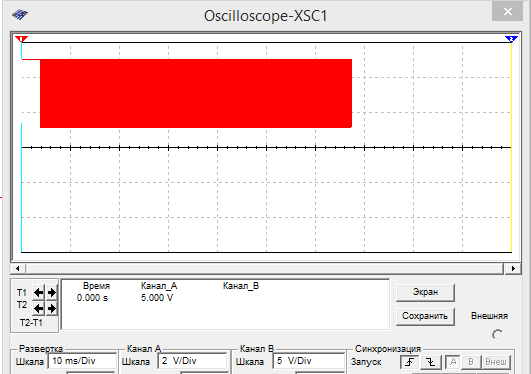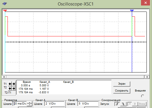При обрыве переменного резистора в первом и третьем контакте, будем наблюдать постоянный сигнал в амплетуде 1,16 В: