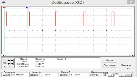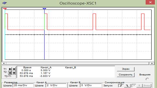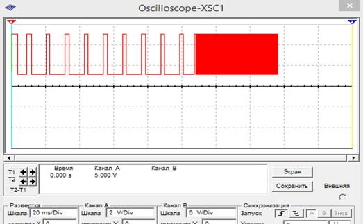 При коротком замыкании данного резистора, частота сигнала увеличится и на выходе осциллографа будем наблюдать следующее: