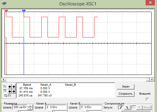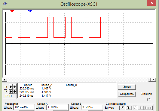 Для более ясного показания изменил развертку до 200мк\дел и добился точного показания периода сигнала, равного 240 мкс.