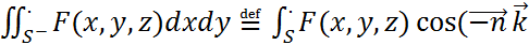 Бұл анықтамалар бірінші түрдегі беттік интегралдың анықтамасында dS орнына оның XOY жазықтығына проекциясы болатын dxdy алынып және сол алмастыру cos(n ⃗ k ⃗)=cos(