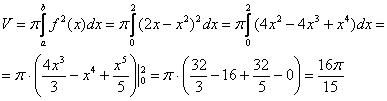 Попутно знакомимся с графиками некоторых других функций. Такой вот интересный график чётной функции Для цели нахождения объема тела вращения достаточно использовать правую половину фигуры, которую я заштриховал синим цветом. Обе функции являются четными, их графики симметричны относительно оси Перейдем к обратным функциям, то есть, выразим «иксы» через «игреки»: К слову, та же история и с функций Теперь наклоняем голову вправо и замечаем следующую вещь: – на отрезке Логично предположить, что объем тела вращения нужно искать уже как сумму объемов тел вращений! Используем формулу: В данном случае: Ответ: В задаче нахождения площади фигуры суммирование площадей используется часто, а суммирование объемов тел вращения, видимо, редкость, раз такая разновидность чуть было не выпала из моего поля зрения. Все-таки хорошо, что своевременно подвернулся рассмотренный пример – удалось вытащить немало полезного. Успешной раскрутки фигур! Решения и ответы: Пример 2: Решение: Выполним чертеж: Пример 4: Решение: Выполним чертеж: Пример 6: Решение: 2) Вычислим объем тела, образованного вращением данной фигуры, вокруг оси Автор: Емелин Александр