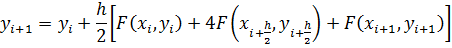 Полученное выражение является неявным, так как в правой части содержатся еще не определенные значения функции yi+h/2и yi+1. Чтобы воспользоваться этой формулой, надо использовать некоторое приближение для вычисления этих значений