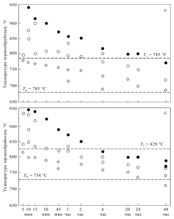 а — б — Рисунок 2.6 - Поведение стекол при термообработке Как видно на рисунке 2.6, и стекла стехиометрического состава, и стекла с максимальным содержанием