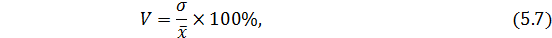 Все рассмотренные показатели, исключая дисперсию измеряются в тех же единицах, что и варианта. Дисперсия единицы измерения не имеет. Для оценки интенсивности вариации используется относительный показатель – коэффициент вариации, рассчитываемый по формуле: