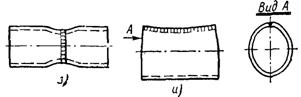 2. Деформации в плоскости, перпендикулярной шву (рис. 55, б, в), например, деформации грибовидности и углового поворота.