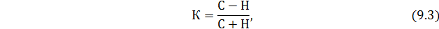 где С – число совпадений знаков, Н – число несовпадений знаков.