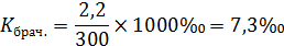 То есть, за год в городе из каждых 1000 мужчин в возрасте 35-40 лет умерло 6 человек. Пример 4. Среднегодовая численность населения составляет 300 тыс. чел. В течение года заключено 2,2 тыс. браков, а оформлено разводов 1,5 тыс. Коэффициент брачности: