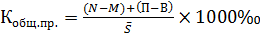 Для определения изменения численности населения как за счет демографических факторов (рождаемости и смертности), так и за счет миграции исчисляется коэффициент общего прироста населения: