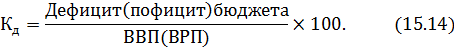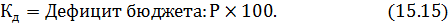 где Р – сумма расходов бюджета. Это соотношение дает возможность судить о сбалансированности бюджетов разных уровней. Степень дефицитности (профицитности) бюджета (Кд) – в процентах к ВВП: