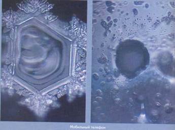 Вредное воздействие электромагнитных волн. Образцы дистиллированной воды (контроль) и воды, которой были показаны слова «Любовь и признательность»