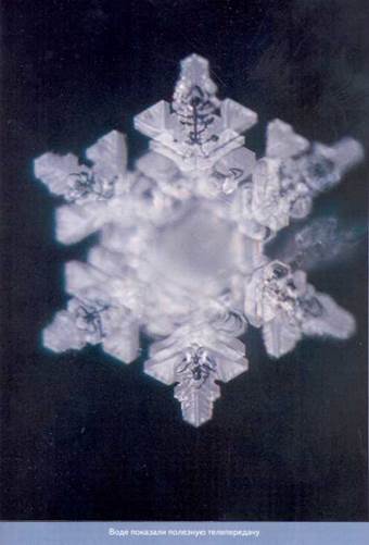 Вода, подвергшаяся воздействию «Любви и признательности» (слева) породила более завершенные кристаллы, чем контрольные пробы (справа). Этот эксперимент подтверждает, что не стоит слишком долго сидеть перед телевизором и за компьютером…