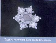 Это кристаллы из воды, которую я сам собрал в Швейцарии. Неудивительно, что такие красивые кристаллы происходят из «водяного рая» Европы. Давайте на мгновение задумаемся об этом мгновении. Как мы можем передать его, пользуясь естественнонаучными представлениями? Дэвид Бом объясняет это тем, что какой-о аспект внутренней вселенной проецируется на каждый момент времени, создавая настоящее. Следующий момент во времени – это тоже отражение другого аспекта вселенной, итак далее. Иными словами, в каждое мгновение мы видим другой мир. Но один мгновенный мир будет влиять на следующий мгновенный мир, и поэтому нам кажется, что мы имеем дело с одним непрерывным миром. Основываясь на этой теории, можно сказать, что мир изменяется каждое мгновение и каждое мгновение заново создается. При этом наше сознание тоже играет свою роль в этом непрерывном создании мира. Я подозреваю, что, если вы это поймете, ваша жизнь никогда уже не будет прежней. То, что я сейчас рассказал, было немного сложно для понимания и, возможно, вызвало некоторую путаницу. Но если мытеперь вернемся к кристаллам, это поможет ответить на многие вопросы. Наш мир изменяется каждое мгновение, и вода первая улавливает эту перемену. Я уже упоминал о том, что в свое время создал прибор для измерения вибраций и использовал его для того, чтобы лучше понять воду. В полдень того дня, когда произошло вторжение Ирака в Кувейт и началась первая Война в заливе, я измерял вибрации водопроводной воды Токио и обнаружил резкое увеличение колебательных частот ртути, свинца, алюминия и других веществ, вредных для человека. Казалось, этому не было подходящего объяснения. Сперва я подумал, что что-то случилось с моим оборудованием, однако повторные измерения показали уже другие величины. И лишь на следующий день, прочтя газету, я связал два, казалось бы, ничем не связанных между собой события. Всю первую страницу занимали известия о начале Войны в заливе. Говорилось о том, что общая масса бомб, сброшенных в первый день войны, была равна всем бомбам, сброшенным за время войны во Вьетнаме. В Японии, на расстоянии тысяч километров от зоны военных действий, я смог замерить вибрации вредных веществ практически одновременно с моментом начала войны. Вы спросите меня: неужели это действительно возможно? Конечно, вредные побочные продукты бомб, сброшенных над Персидским заливом, не могли быть тотчас же перенесены в Японию. И тем не менее вредные вибрации бомб, сброшенных на одной стороне земного шара, каким-то образом тотчас же достигли всех уголков планеты. Эти вибрации распространяются, не подчиняясь законам времени и пространства. Я полагаю, что вибрации существуют не в нашем трехмерном мире и не в невидимом для нас мире в другом измерении, но в неком промежуточном месте. Когда что-то происходит на Земле, неважно, на каком именно плане, вода первая улавливает и передает нам эту новую информацию. Во времена Войны в заливе я еще не начал фотографировать кристаллы, но, уверен, фотографии получились бы весьма занятные. Позвольте мне привести вам еще один пример того, как вибрации практически мгновенно смогли изменить материальный мир. В данном случае сила молитвы была использована для очищения воды. На плотине Фудзивара в Центральной Японии священник буддийской школы сингон по имени Хоуки Като по нашей про