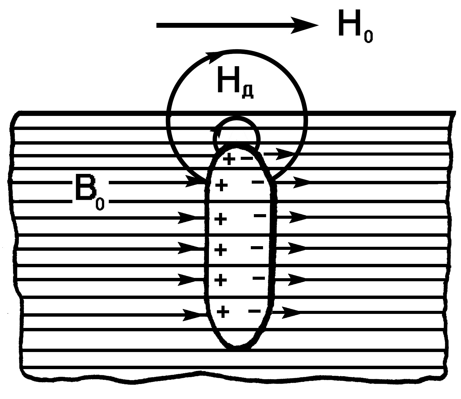 Возникновение поля дефекта Нд над поверхностью намагниченной детали свидетельствует о том, что она дефектна. Остается это поле обнаружить каким-либо физическим способом, что предопределяет суть и содержание метода магнитной дефектоскопии.